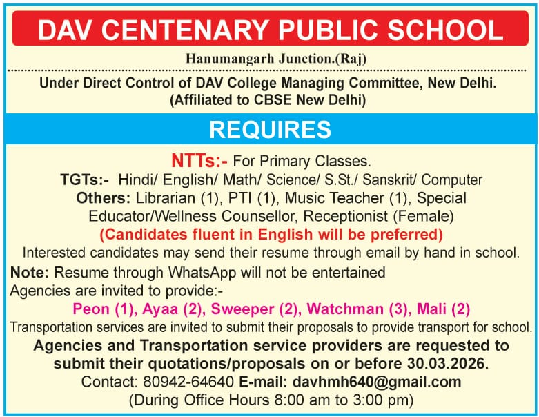 DAV CENTENARY PUBLIC SCHOOL, HANUMANGARH JUNCTION